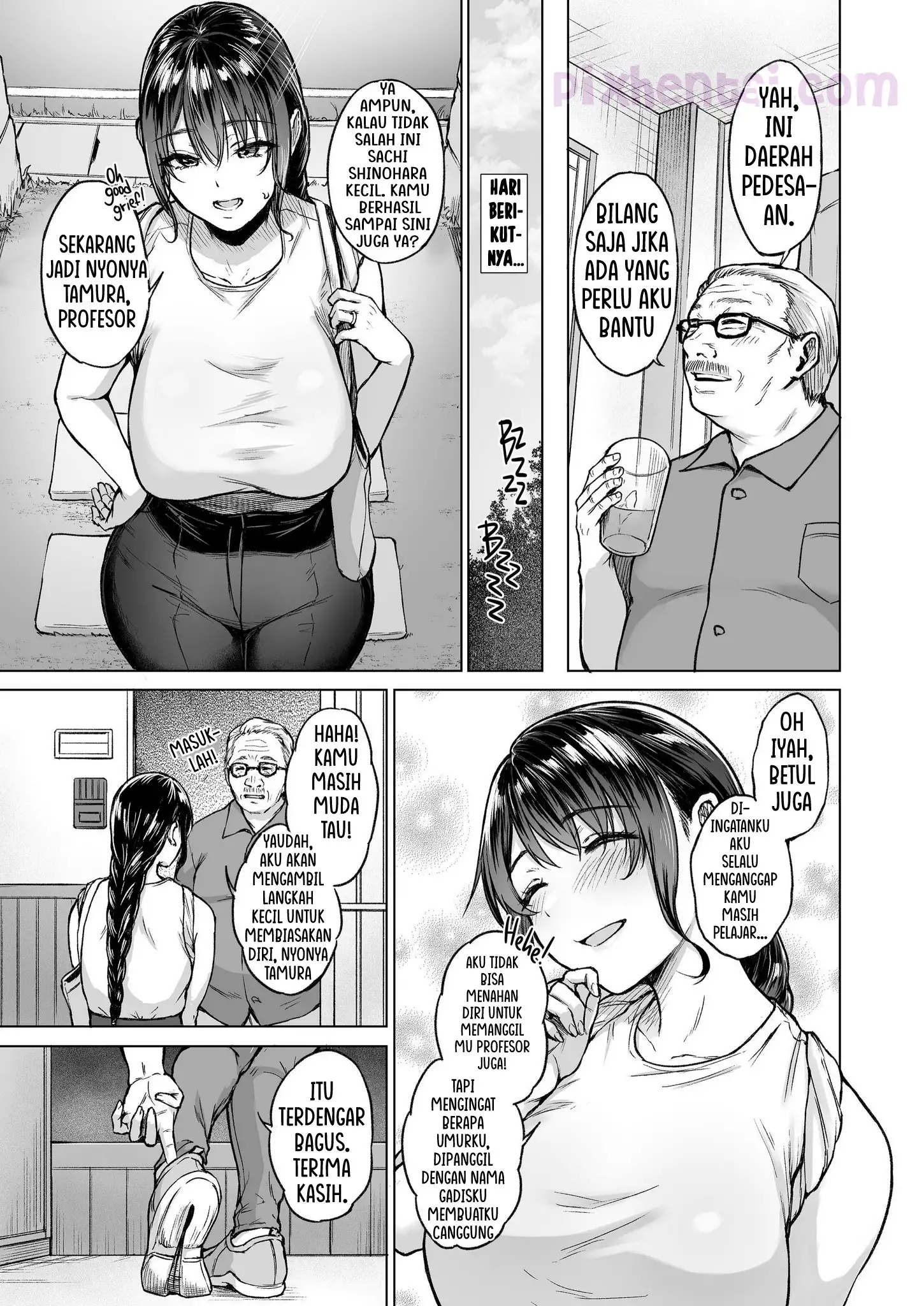 Sachi dan suaminya memutuskan untuk pulang kampung, setelah gagal mencapai kehidupan yang mereka harapkan di Kota. Beberapa tetangga mulai menggosipkan dirinya, tetapi tidak dengan seorang mantan guru mereka (sebut saja profesor), yang justru menyambut mereka dengan hangat dan bahkan menawari Sachi pekerjaan sebagai pembantu rumah tangganya. Namun gawatnya, tubuh montok Sachi yang bergoyang-goyang kesana kemari selama bekerja membuat profesor menjadi tidak tahan. Sepertinya, kepulangan Sachi ke kampung halamannya kali ini bukanlah membawa oleh-oleh, melainkan membawa gairah bagi profesor.