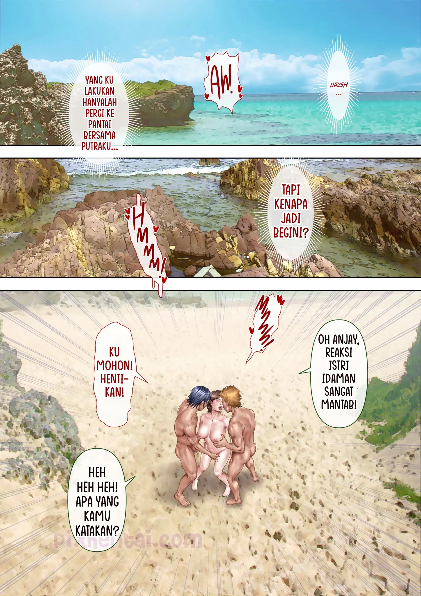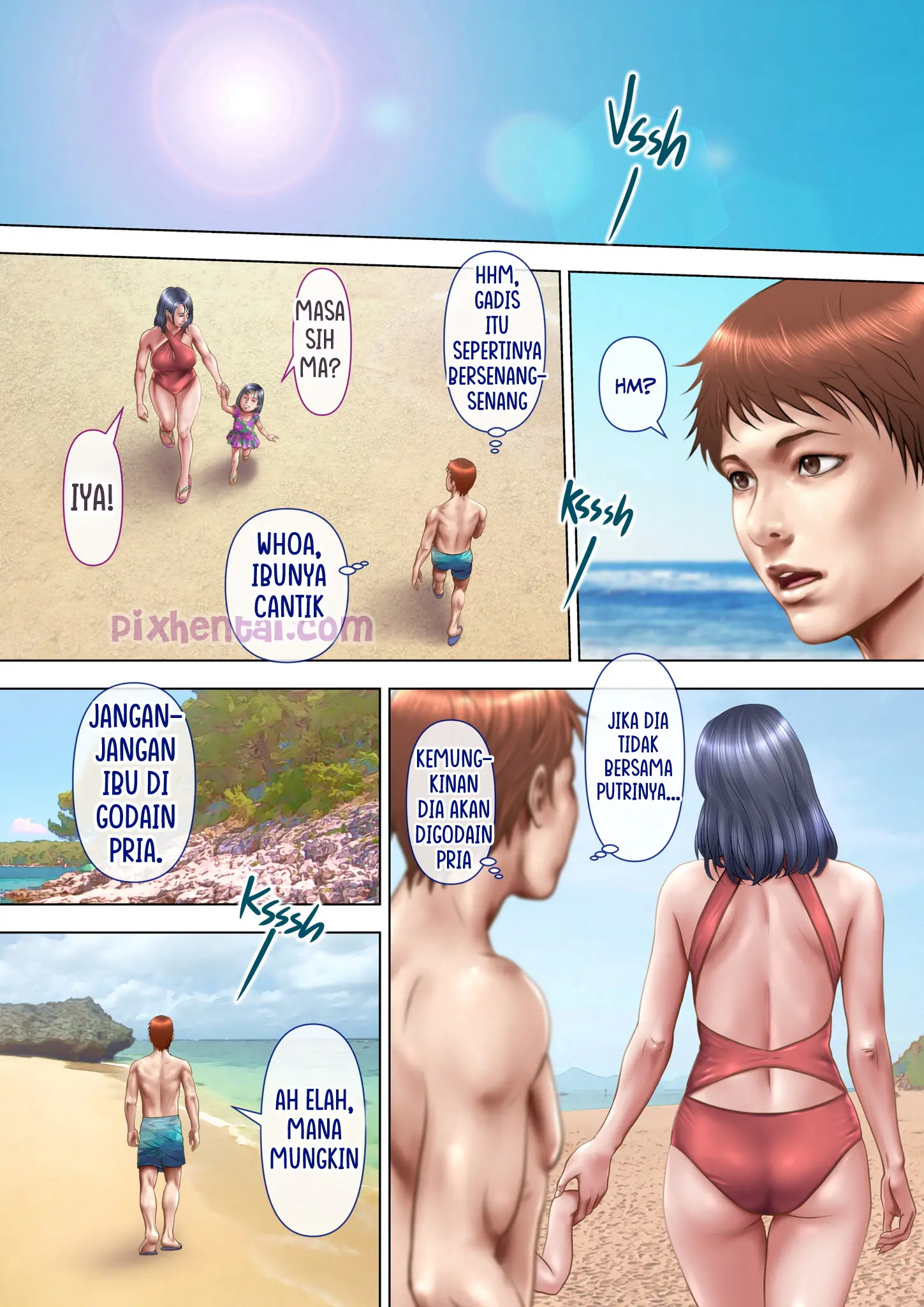 Musim panas telah tiba dan seorang ibu rumah tangga bernama Honami Matsushima memutuskan untuk pergi ke pantai bersama putranya. Namun Honami tidak menyangka bahwa bikini yang ia beli secara online itu bakal tembus pandang ketika terkena air dan memperlihatkan bagian tubuhnya yang seharusnya tertutupi. Sedangkan di sudut lain pantai, ada dua pemuda setempat yang suka mencari dan menggoda Milf-milf sexy. Jika mereka menemukan Honami dalam keadaan seperti itu, sudah dipastikan Honami akan menjadi sasaran empuk bagi mereka.