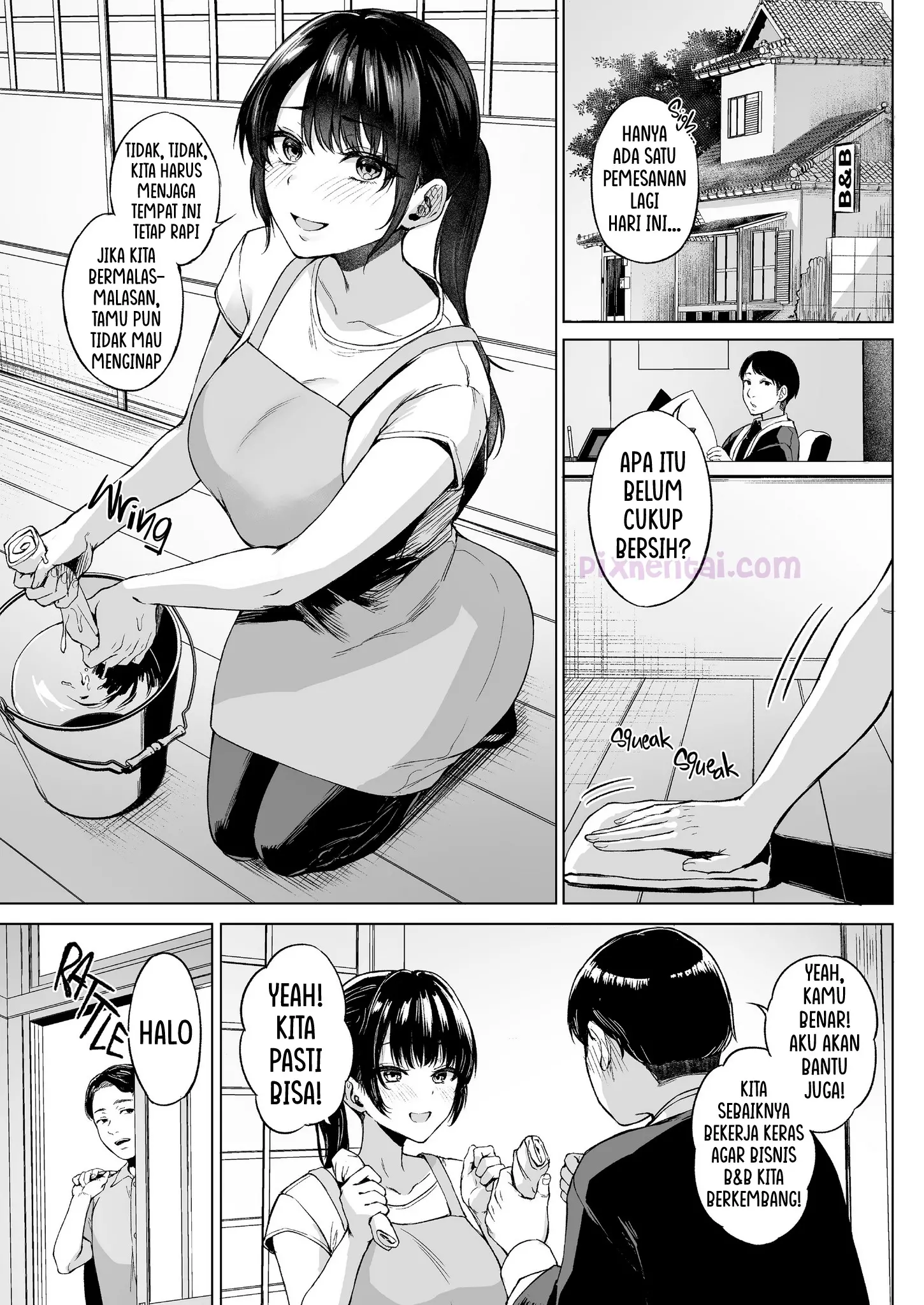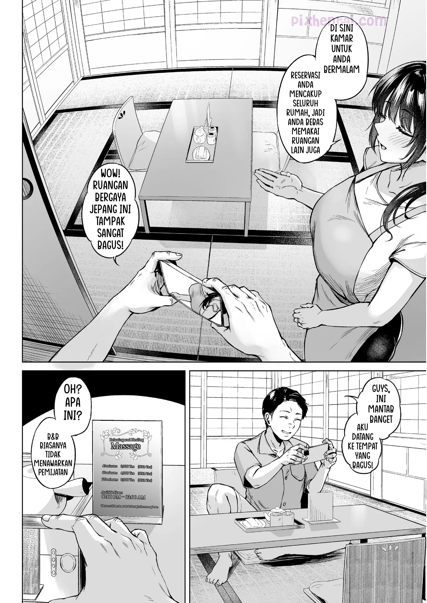 Koichi bersama istrinya dengan penuh semangat menjalankan bisnis B&B walaupun sepi. Hingga suatu hari, mereka mendapat pengunjung, seorang vlogger terkenal bernama Takashin. Karena ngefans berat dengan vlogger tersebut, Istrinya Koichi yang sexy pun tak ingin mengecewakannya dan berusaha memberikan pelayanan yang paling memuaskan meski harus basah-basahan tengah malam.