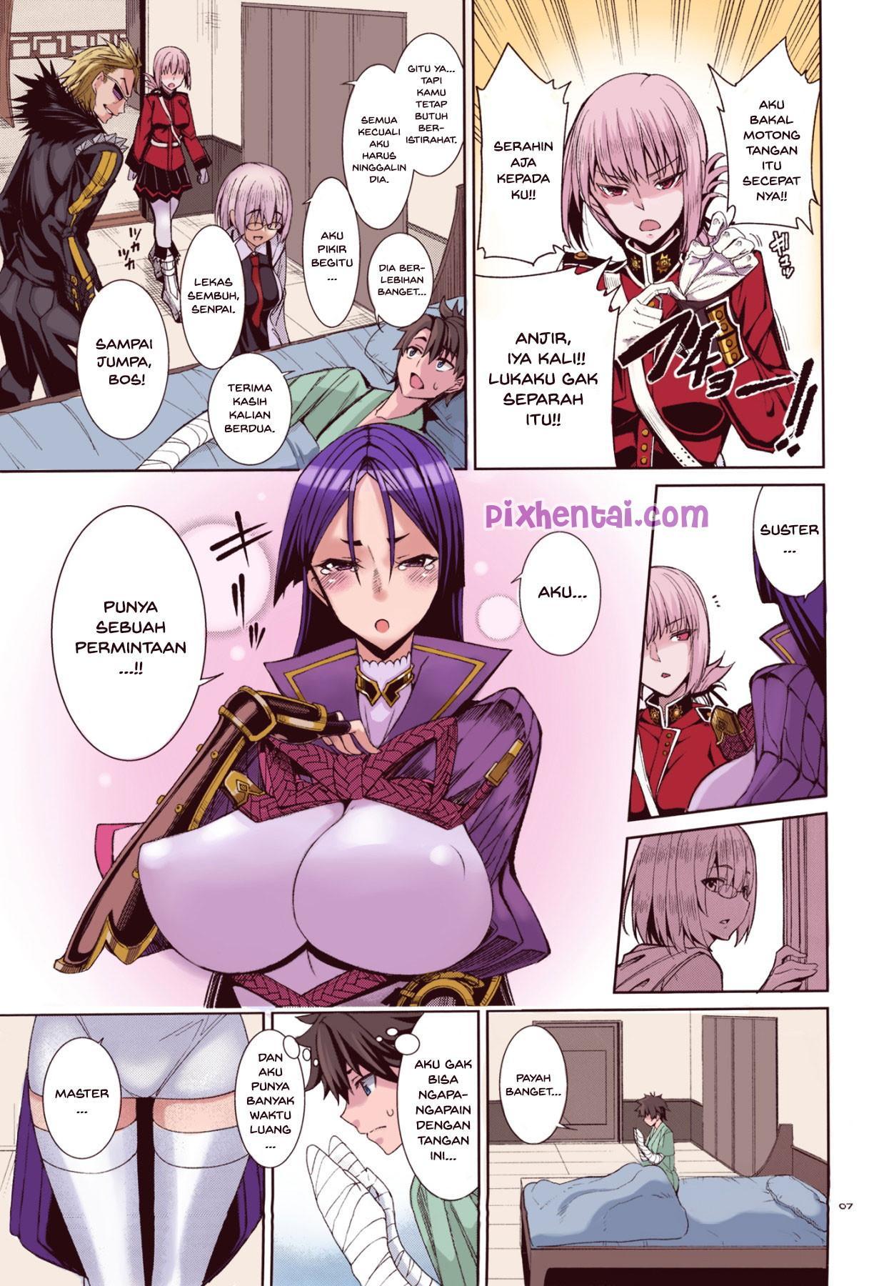 Karena merasa bersalah telah melukai tangan Fujimaru Ritsuka, Raikou-san bertekad untuk menjadi perawat dadakan. Namun pakaian suster yang dikenakannya sangatlah ketat dan sexy sehingga justru membuat Fujimaru menjadi terangsang.