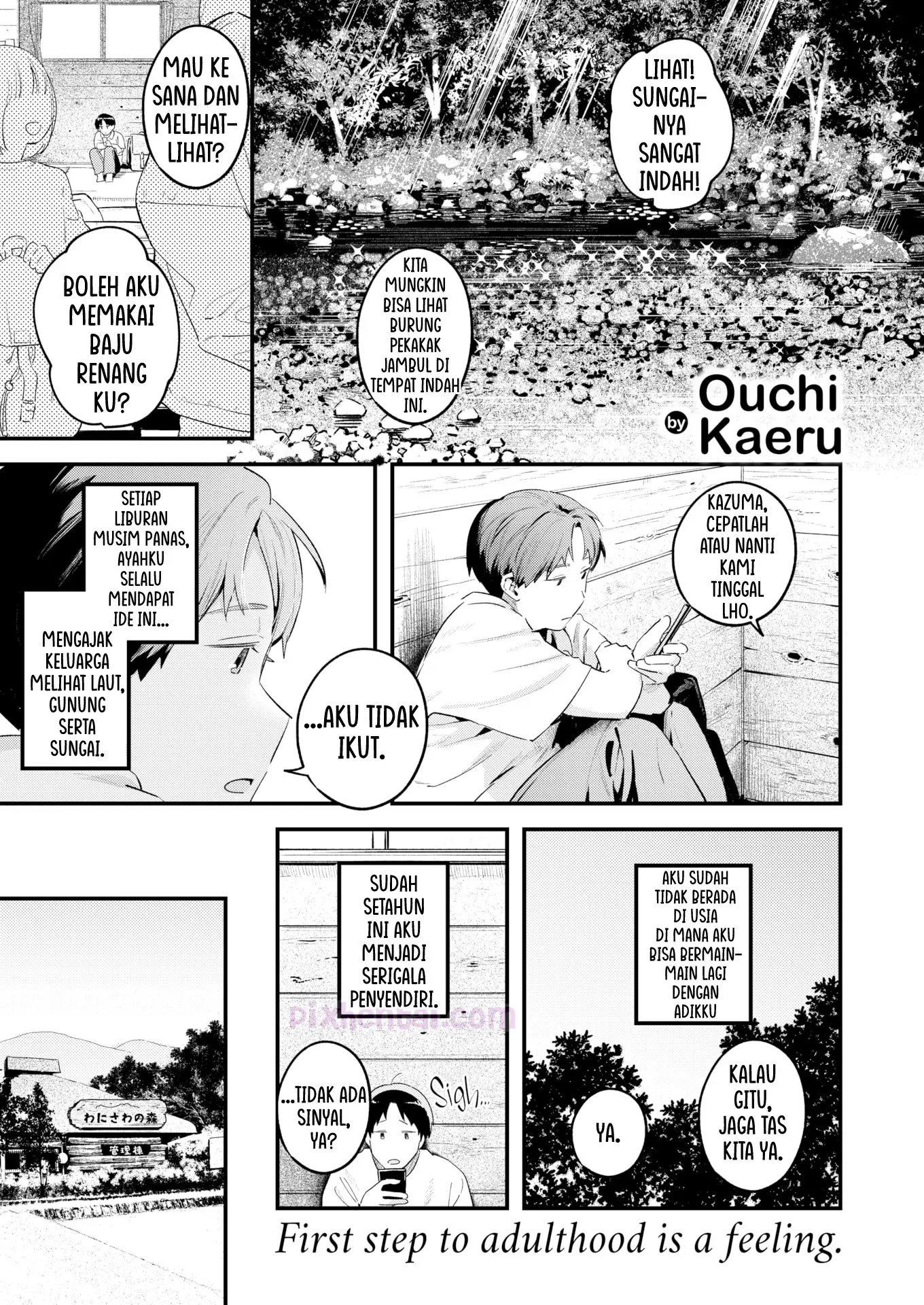 Setiap liburan musim panas, Ayah Kazuma selalu mengajaknya jalan-jalan sekeluarga. Namun semakin dewasa, Kazuma semakin malas untuk ikut serta. Kazuma merasa sudah tidak pantas lagi untuk bermain-main dengan adiknya, ia ingin dianggap dewasa. Tetapi di liburan kali ini, ia bertemu seorang wanita yang lebih tua, mbak-mbak lokal yang mengajarinya cara menjadi dewasa.