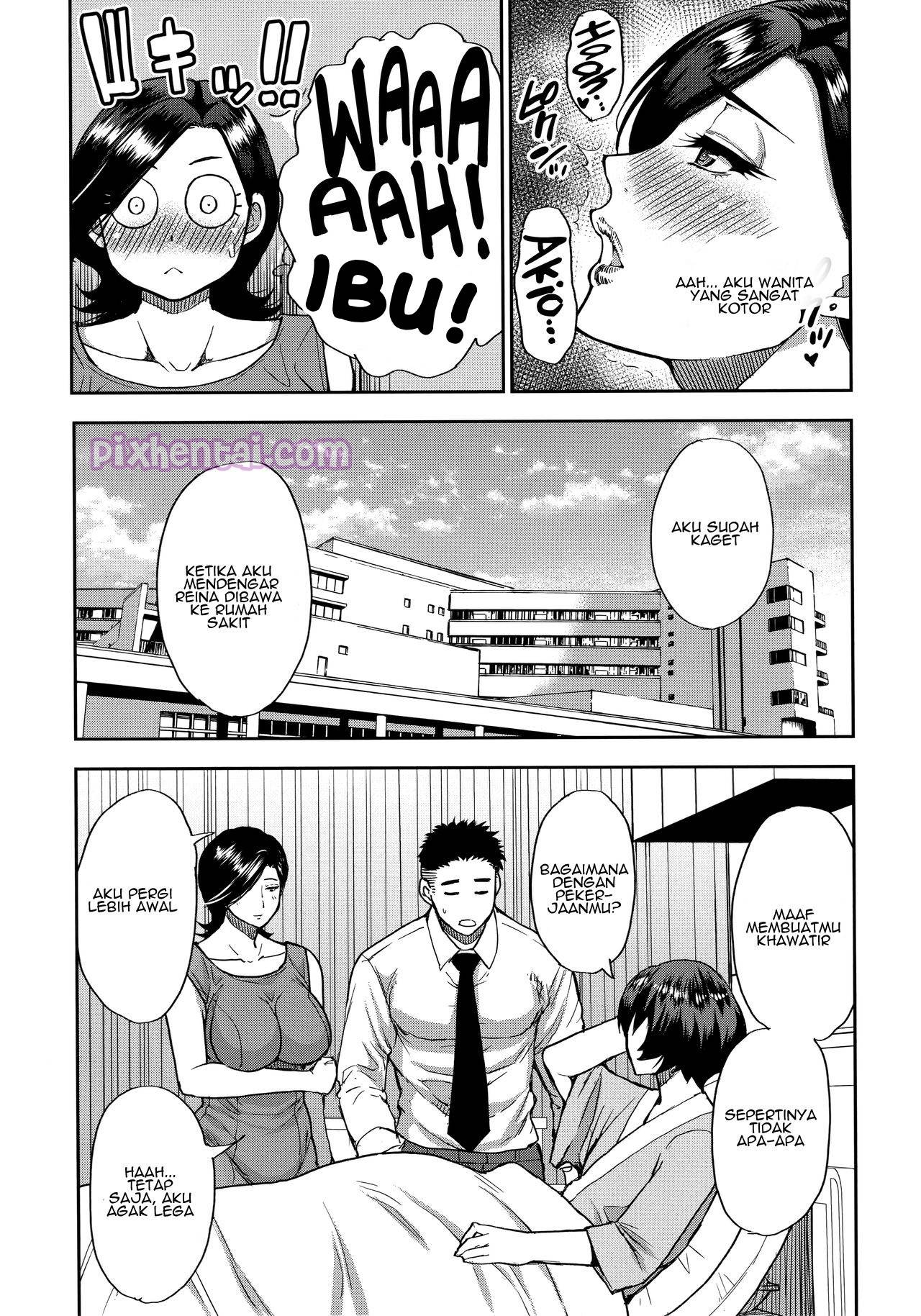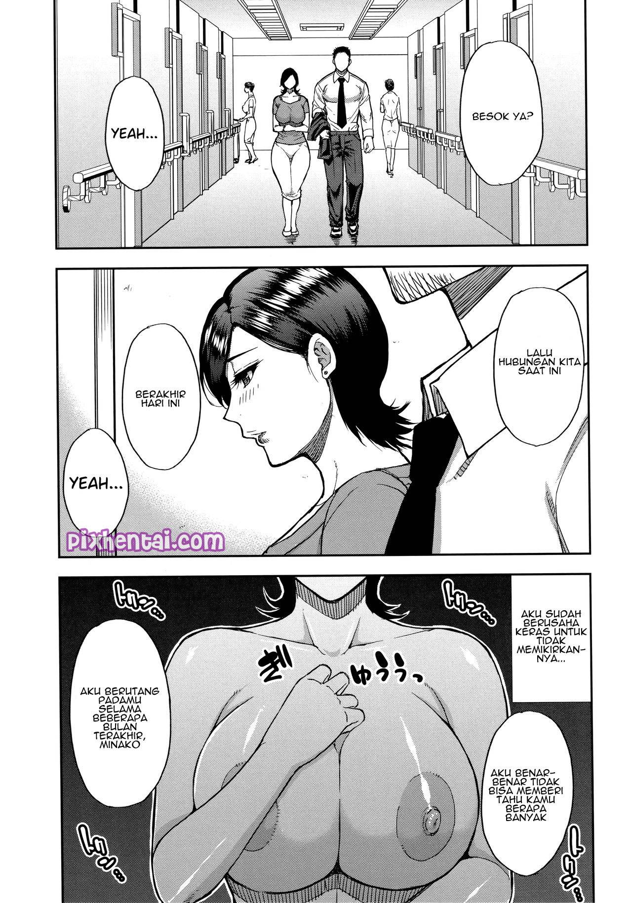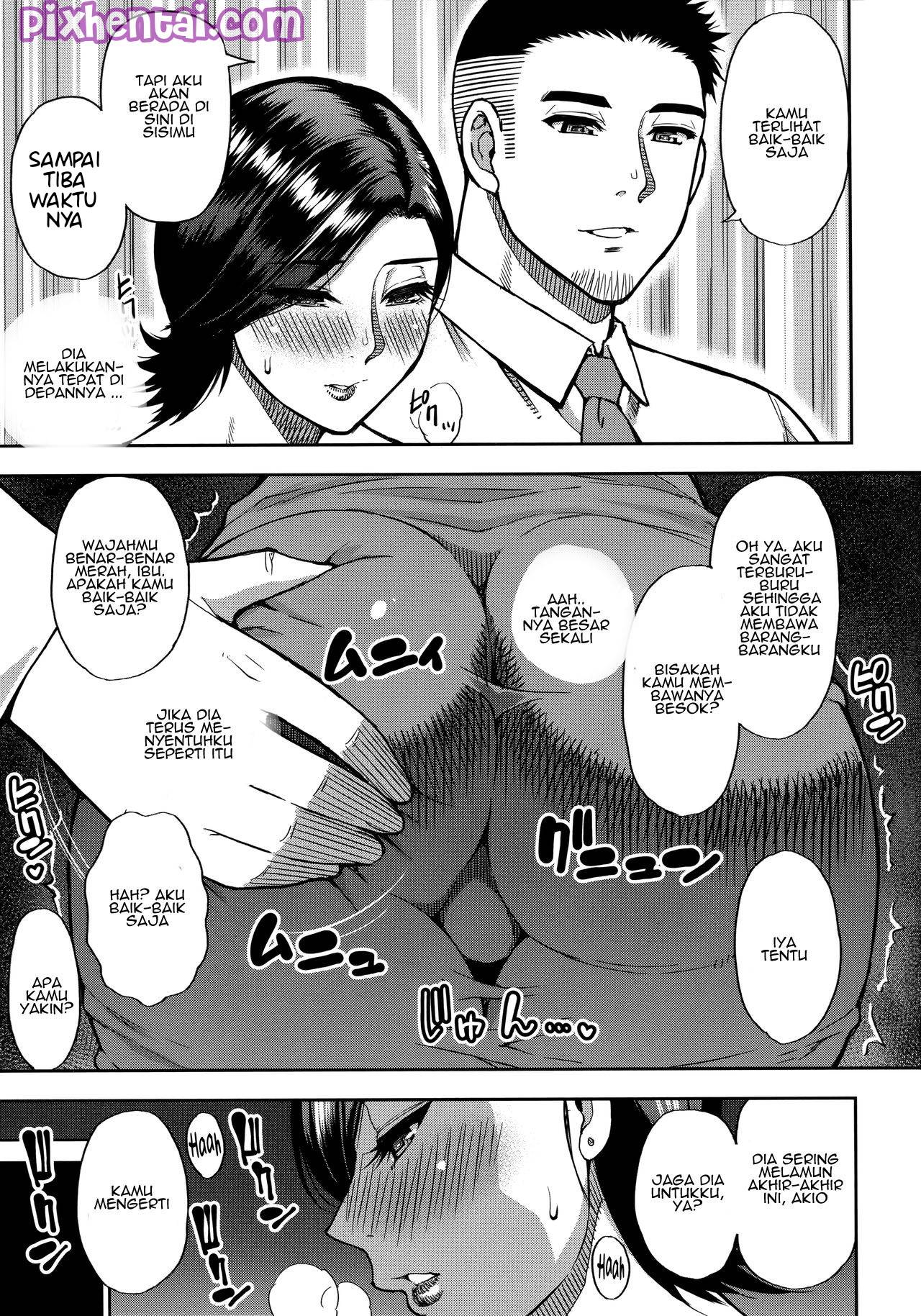 Sudah dua minggu Minako tidak bertemu dengan Akio karena sedang ada perjalanan bisnis. Hal itu membuat Minako terangsang berat, untungnya Akio pulang karena mendengar kabar bahwa Reina sudah hampir melahirkan dan kini berada di rumah sakit. Untuk berjaga-jaga Reina harus menginap di rumah sakit, sedangkan suaminya justru ngentot dengan Minako, ibu mertua Akio yang semok itu dengan leluasa.