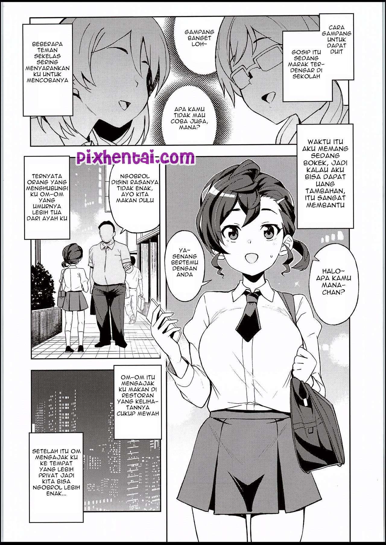 Mana-chan mencoba melakukan kencan berbayar dengan seorang om-om untuk mendapatkan uang. Awalnya hanya kencan biasa, tapi ujung-ujungnya om itu minta ngentot dengan Mana-chan yang masih virgin.