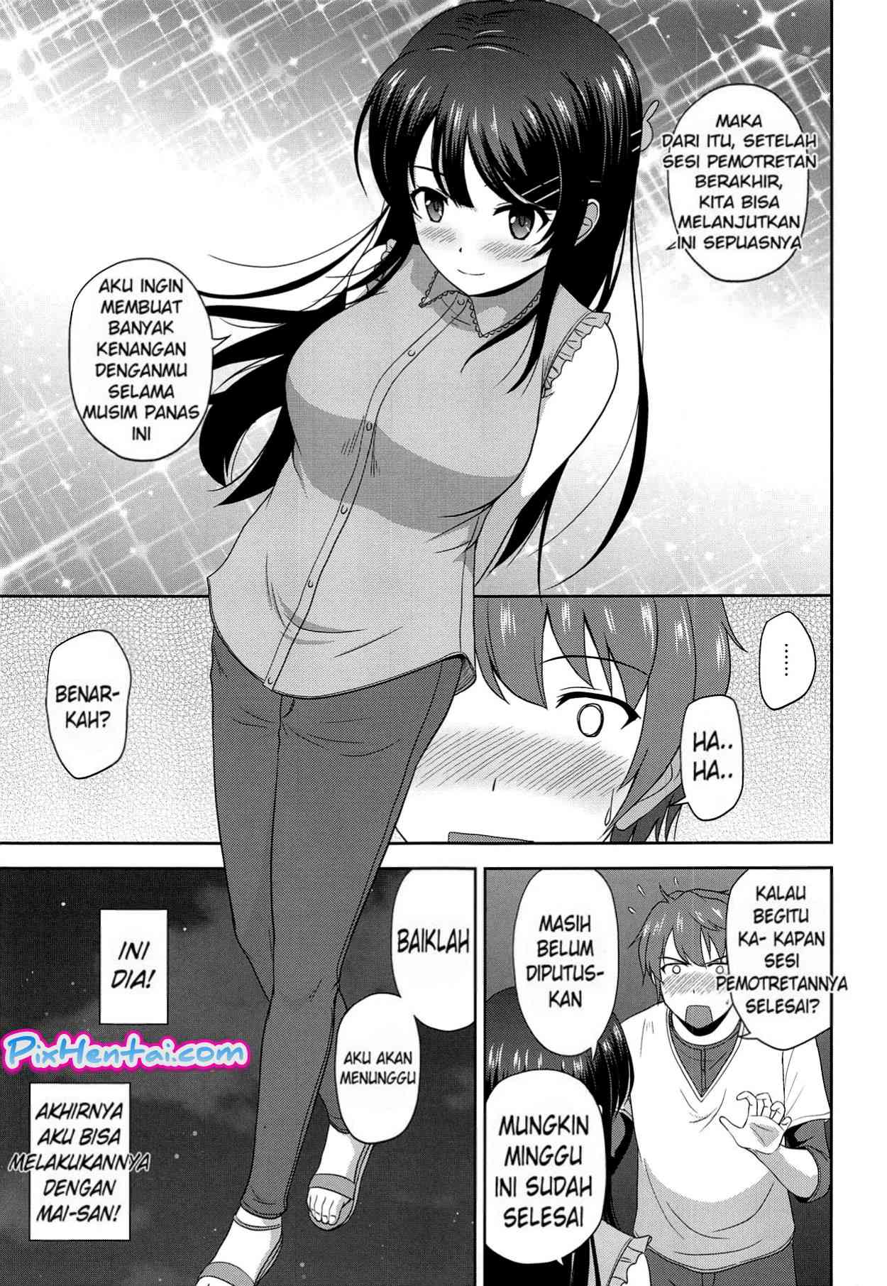 Sakuta sudah tidak tahan lagi ingin ngentotin pacarnya, Mai-san. Namun, karena Mai-san ada jadwal sesi pemotretan, ia tidak bisa memenuhi permintaan Sakuta hingga satu minggu ke depan.