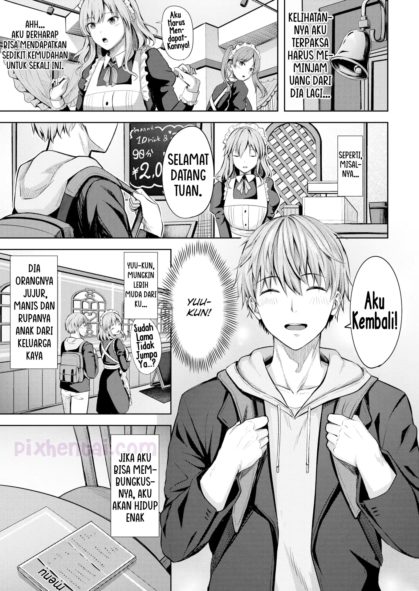 Sayo, gadis yang bekerja di maid cafe sedang dalam situasi sulit bulan ini karena ibunya masuk rumah sakit. Ia pun terpaksa harus meminjam uang lagi dari salah satu teman kerjanya yaitu, Arisu-chan. Sayo berpikir, ia akan bisa hidup enak jika mempunyai cowok baik dan tajir seperti pelanggannya yang bernama Yuu-kun. Namun ketika kesempatan kencan pertama bersama Yuu-kun itu tiba, Arisu-chan ternyata tak mau ketinggalan untuk ikut kencan bersama mereka.