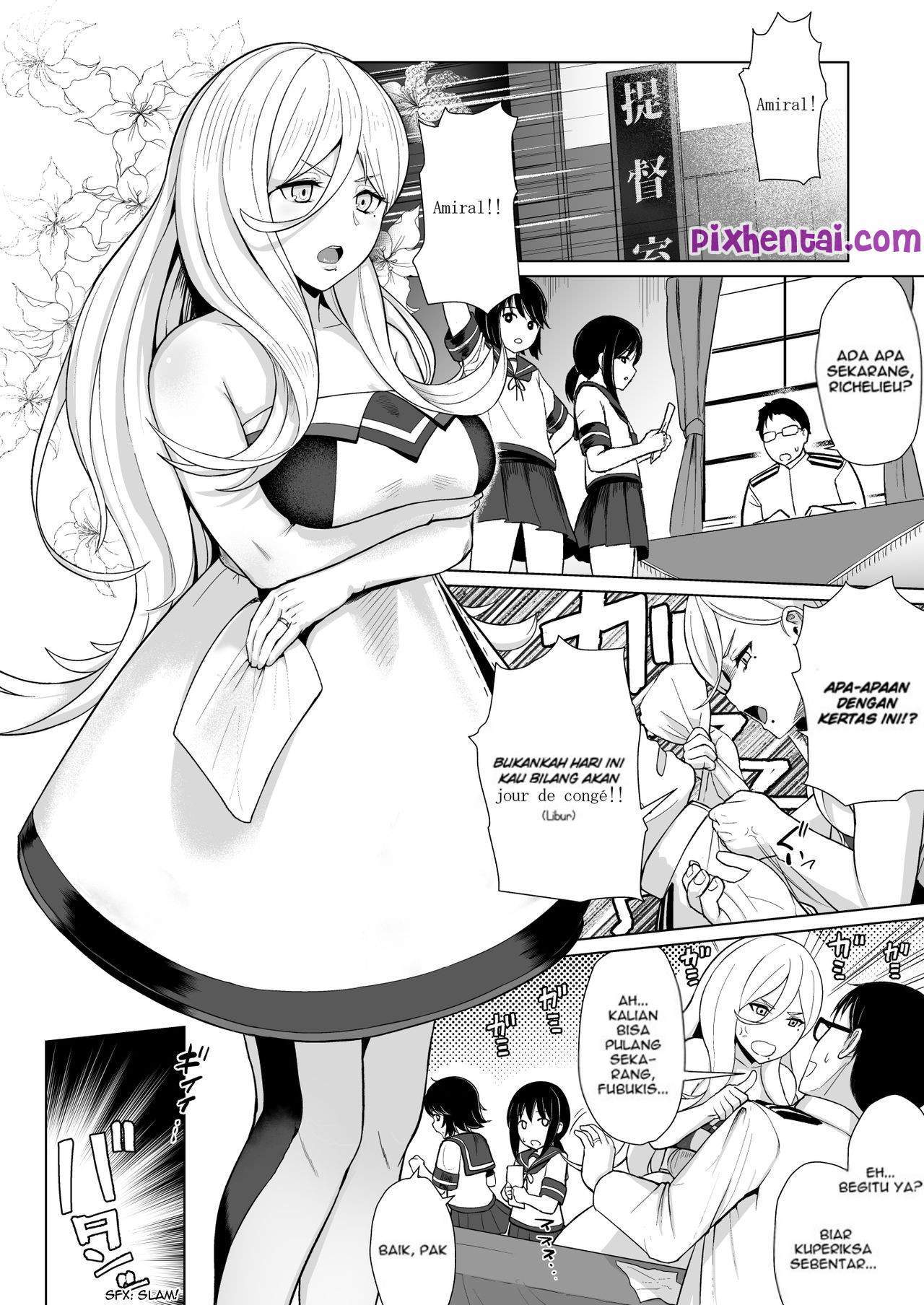 Richelieu tiba-tiba menghampiri Laksamana dan menyuruhnya untuk libur kerja. Ternyata ia ingin mengajak Laksamana untuk ngentot disana.