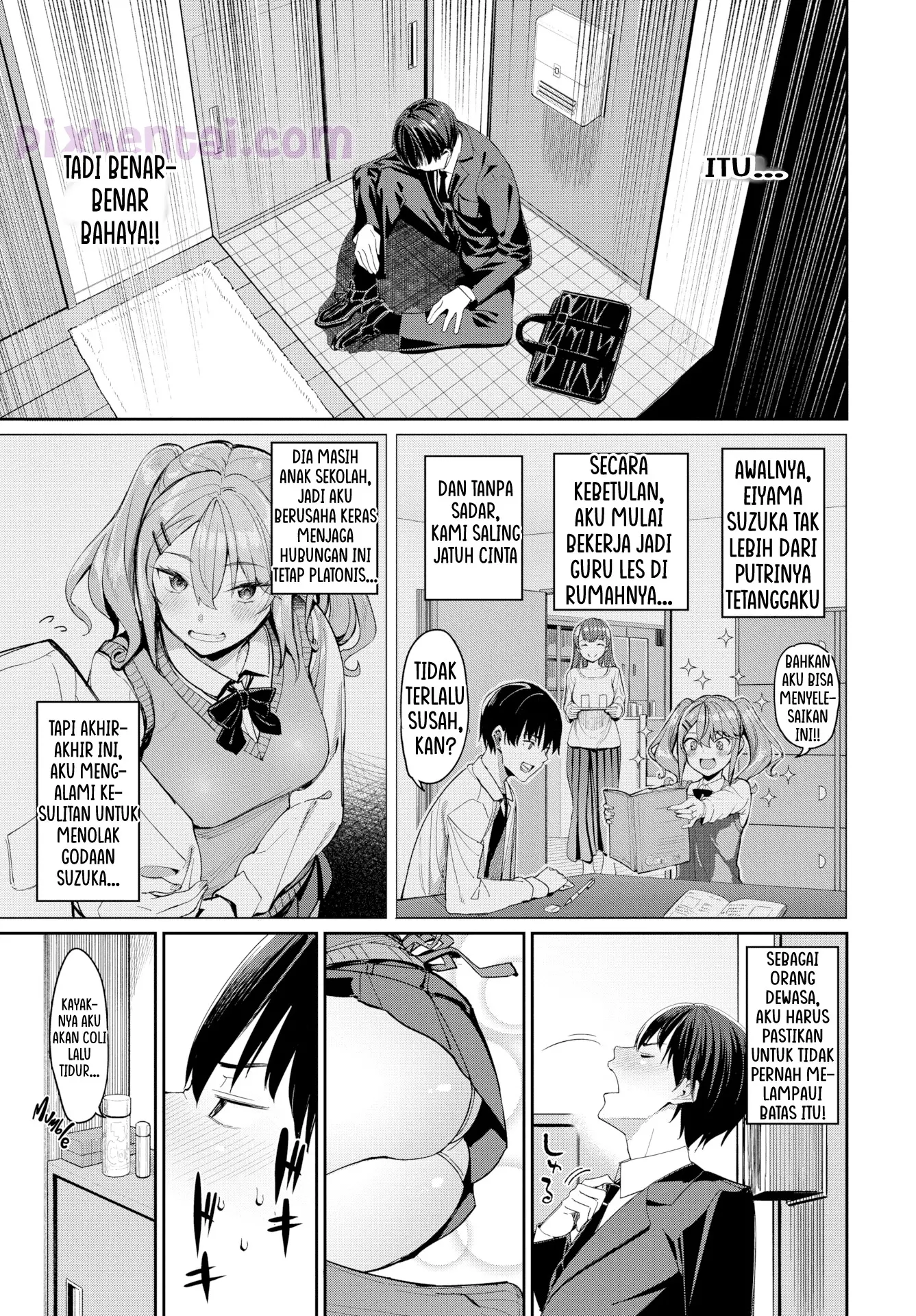 Awalnya, Ikkun hanyalah guru privat tetangganya yang bernama Suzuka. Namun seiring berjalannya waktu mereka pun saling jatuh cinta dan akhirnya berpacaran. Namun, Ikkun selalu berusaha menolak ajakan Suzuka untuk melakukan sex. Semua itu ia lakukan supaya hubungan cinta mereka tetap bersifat non-seksual, karena ia tahu bahwa Suzuka masih pelajar. Akan tetapi, godaan dari Suzuka akhir-akhir ini semakin dahsyat yang membuat Ikkun semakin sulit menolaknya.