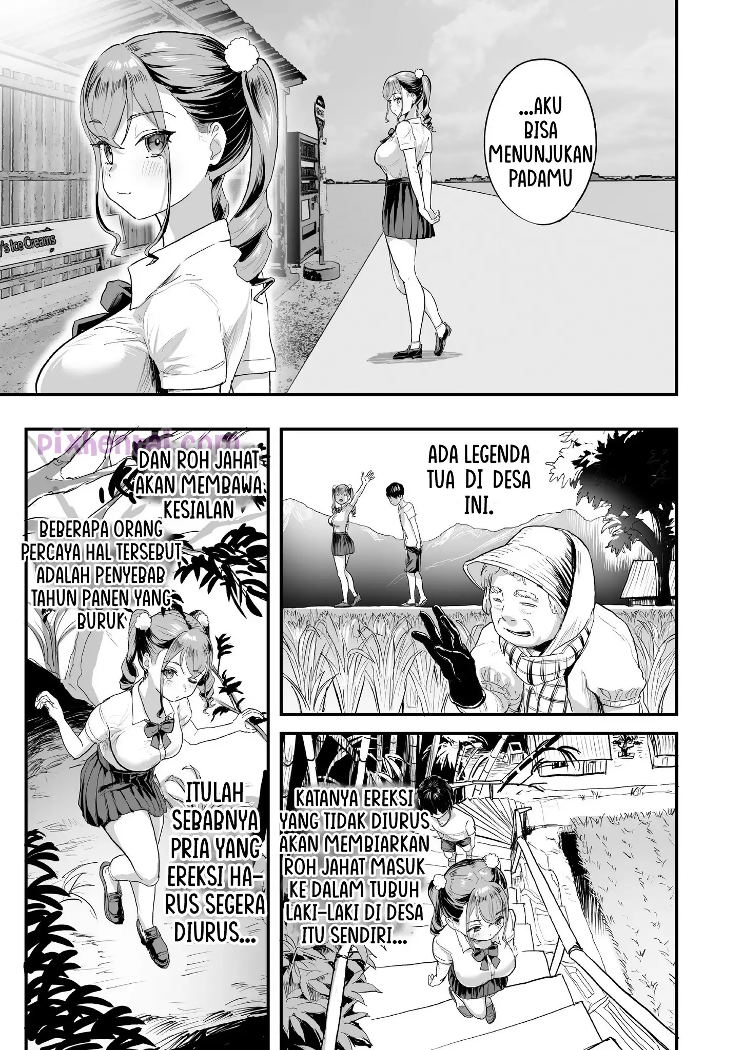 Legenda tua yang aneh-aneh biasanya masih kerap ditemukan di pedesaan. Seperti contohnya di desa yang ditinggali oleh MC kali ini, di mana penduduknya bilang bahwa ereksi laki-laki yang tidak diurus akan mendatangkan roh jahat yang membawa kemalangan bagi desa. Tapi tak perlu cemas, karena setiap kali MC mengalami ereksi, dua cewek sexy selalu siap melakukan ritual pengusiran.