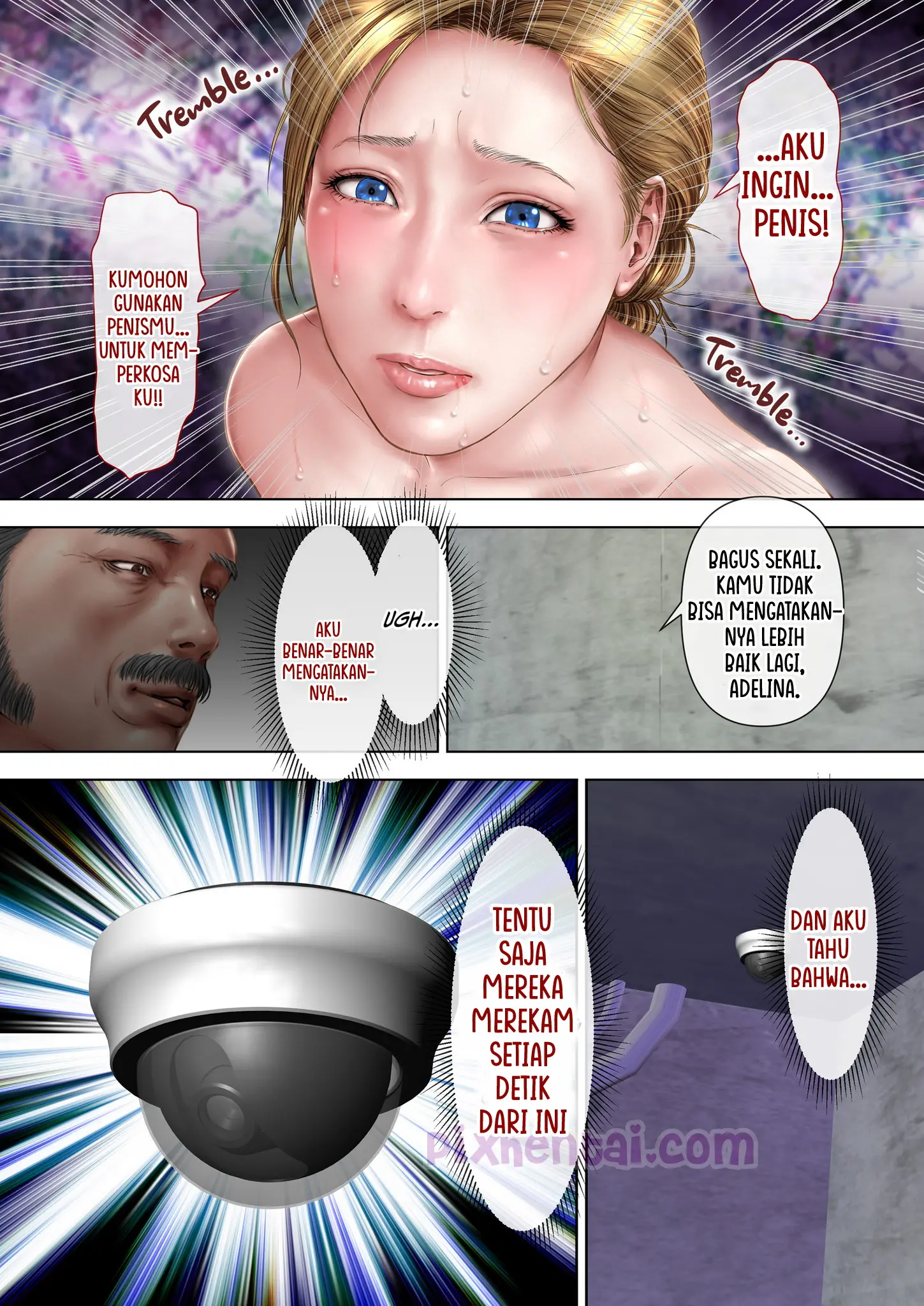 Adelina sangat bersemangat setelah mendapat pesan di ponselnya yang berisi ajakan kencan dari suaminya. Akan tetapi, ketika ia membuka matanya, yang ada di hadapannya ternyata bukanlah suaminya melainkan para atasan suaminya. Meskipun jabatan mereka berbeda-beda, namun pandangan mata mereka tertuju pada satu hal yang sama, yaitu tubuh semok Adelina yang sedang terikat ke kursi dan hanya memakai pakaian dalam.
