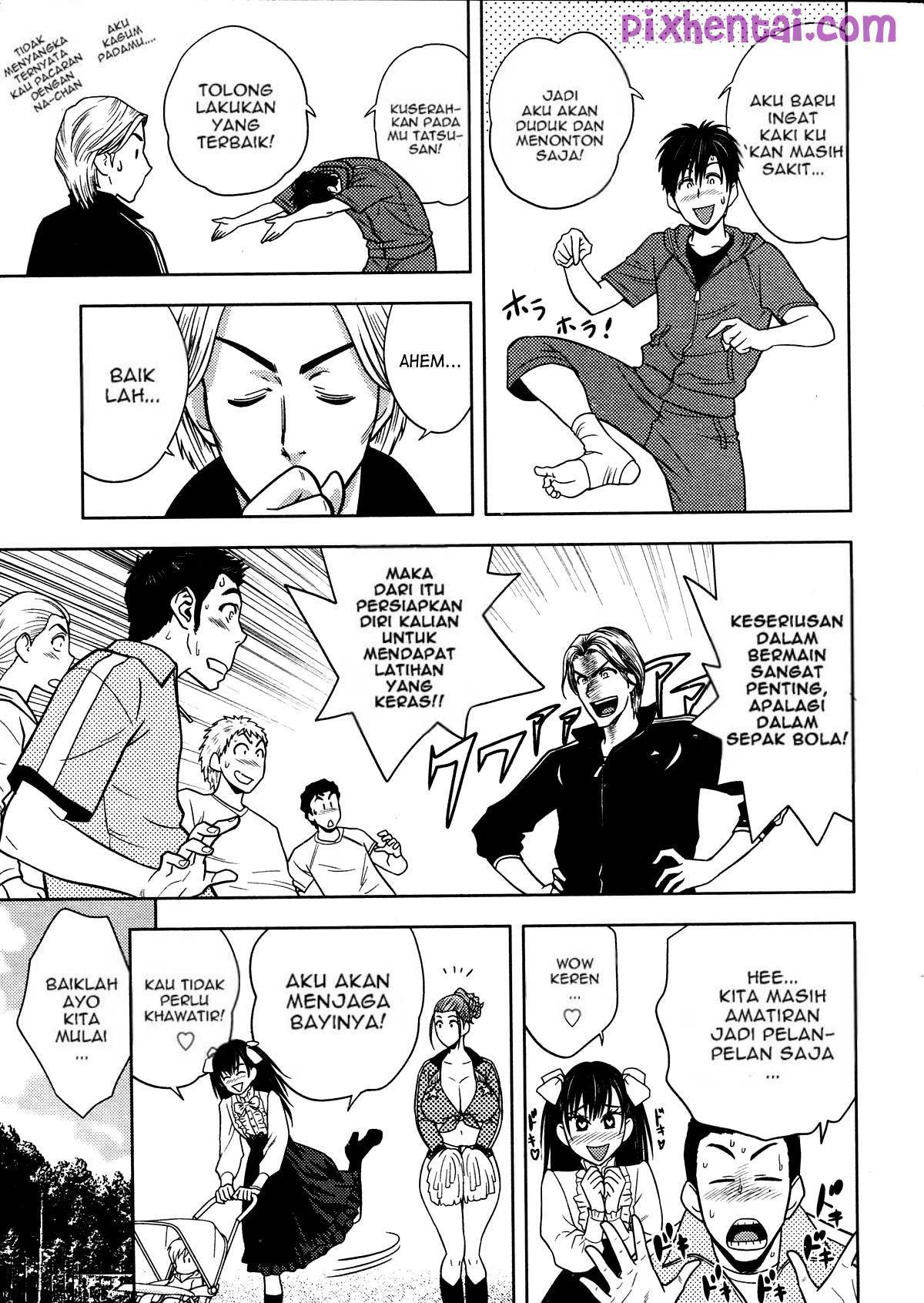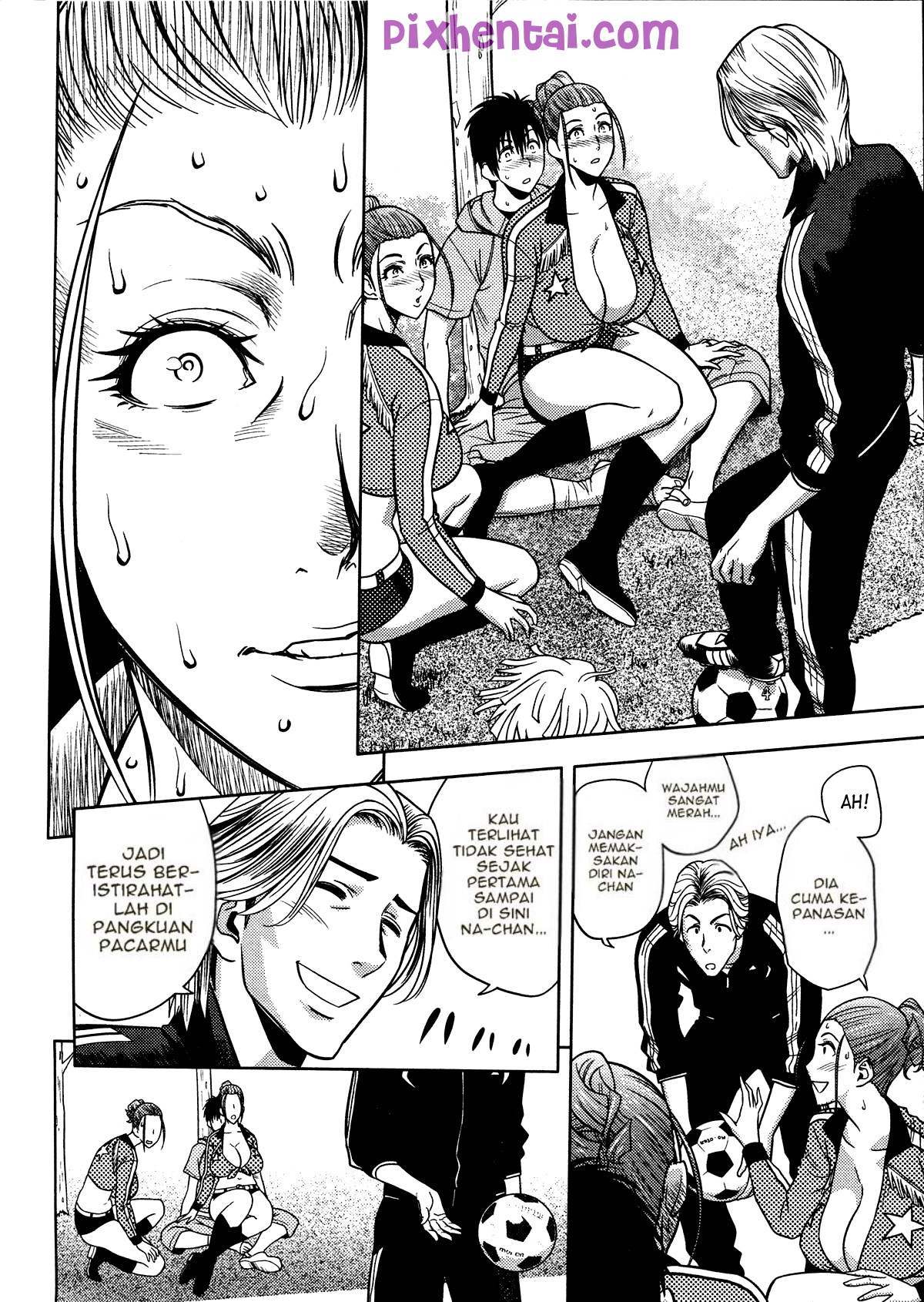 Shinji-kun dan teman-temannya berlatih sepakbola di lapangan dan suami Yumi-san menjadi pelatih mereka. Shinji-kun beralasan kakinya cedera agar bisa ngentot dengan Yumi-san.
