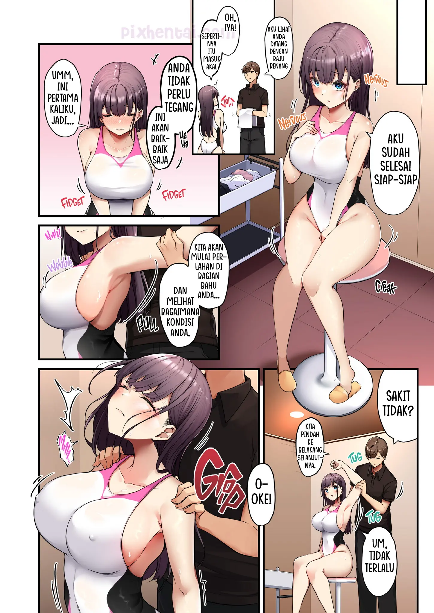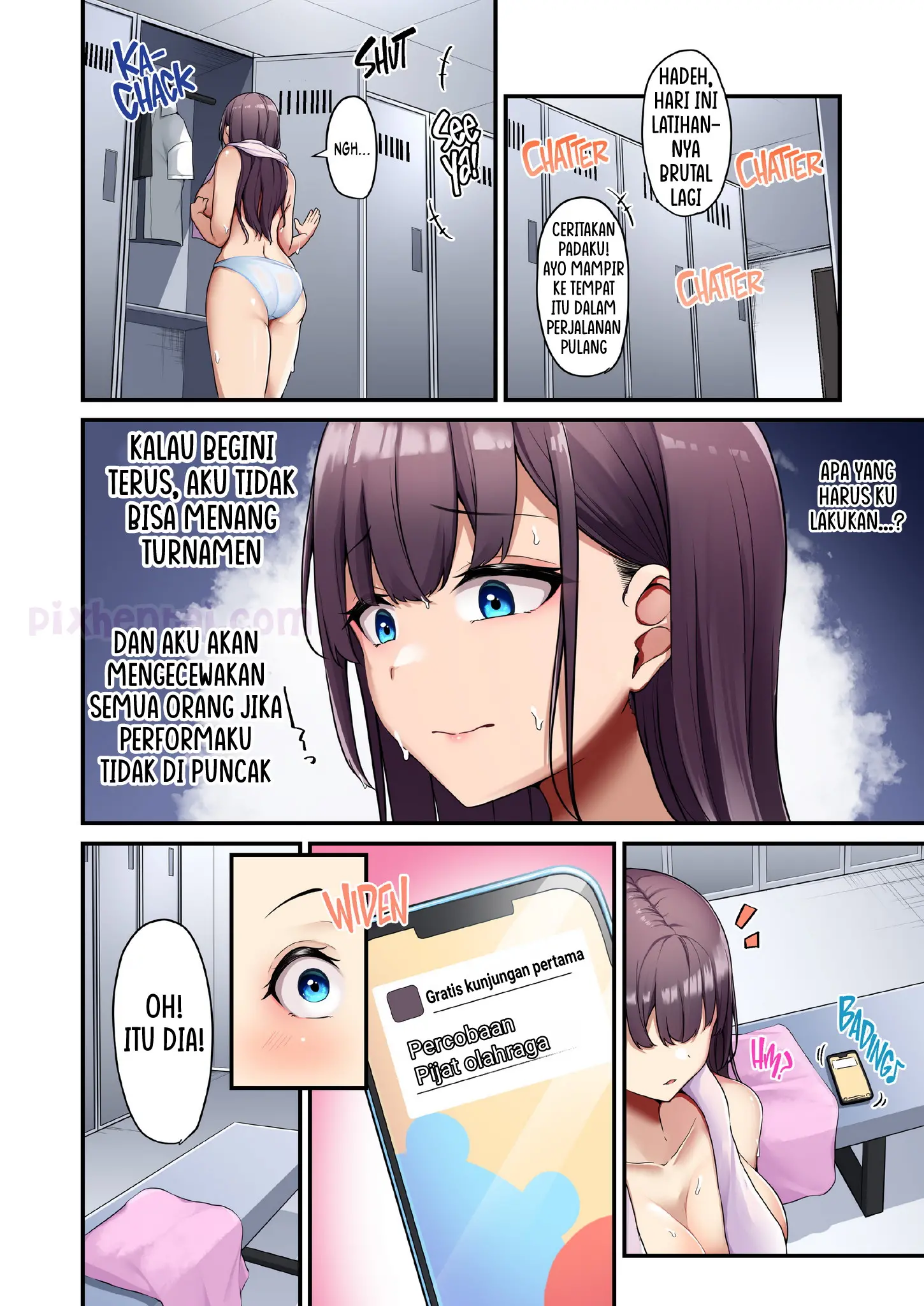 Catatan waktu renang Manami semakin lama semakin melambat, padahal dia adalah andalan di tim renang, bisa-bisa mereka kalah di turnamen. Karena tak ingin mengecewakan rekan-rekannya, Manami pun mencari solusi dan akhirnya mencoba klinik terapi pijat setempat. Tanpa diduga, tukang pijatnya yang terampil menggosok tubuh Manami atas bawah, depan belakang, luar dalam dan tak lupa pula untuk mengecas Manami sampai penuh.