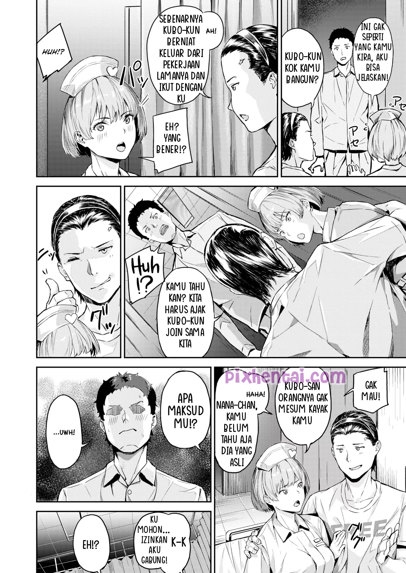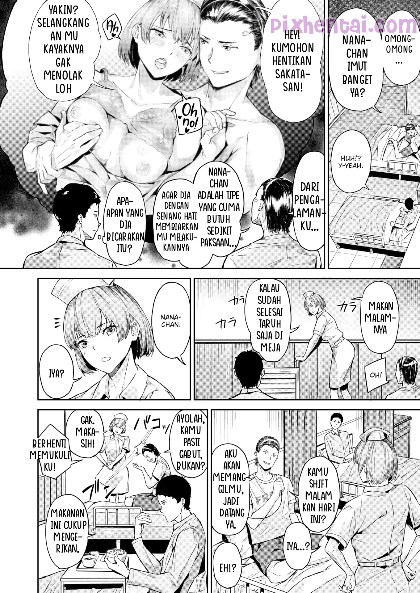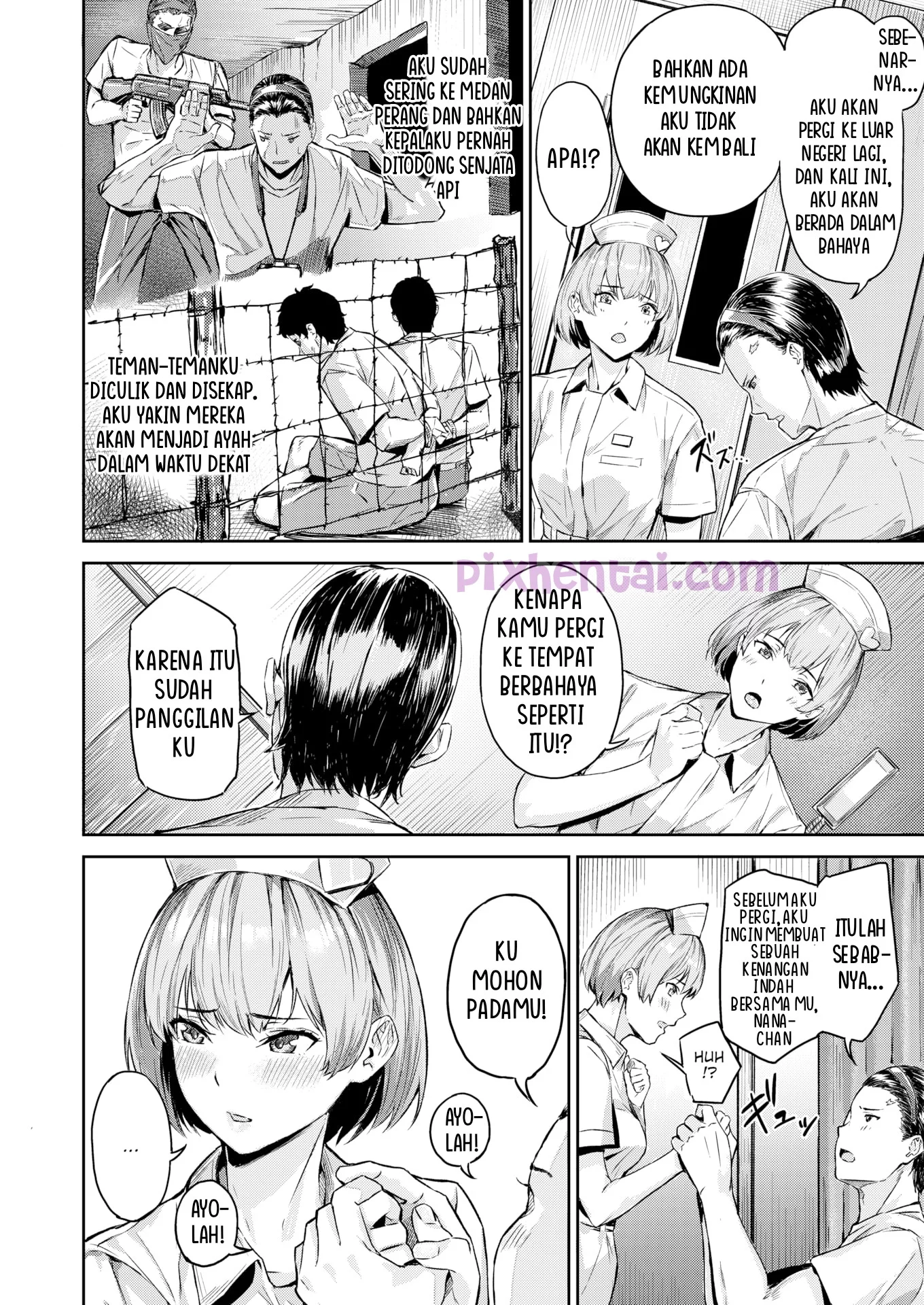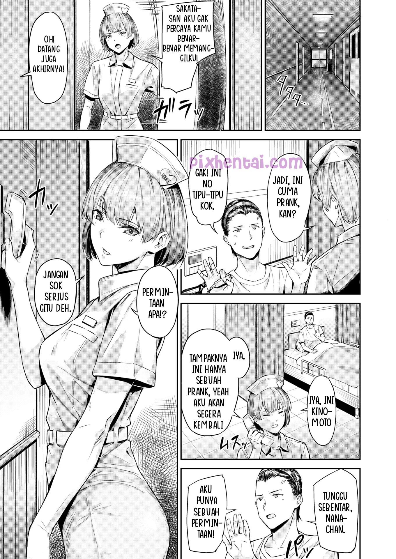 Karena terlalu banyak bekerja, Kubo Masato akhirnya masuk rumah sakit. Disana ia berkenalan dengan Sakata Kazuhito, seorang fotografer berita yang sering bertugas di medan perang. Kebetulan, suster yang merawat mereka yang bernama Kinamoto Nana-chan sangatlah kawaii. Kubo dan Sakata pun sama-sama suka pada suster Nana-chan, tetapi, Sakata lebih berpengalaman dengan wanita. Ketika suster Nana-chan mendapat jatah shift malam, Sakata langsung merayu suster Nana-chan agar mau ngesex dengannya.