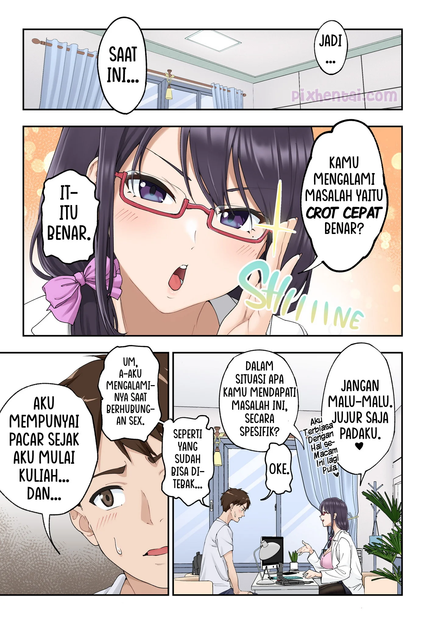 Pemuda bernama Shun menyadari ada yang tidak beres pada kemaluannya. Setiap kali berhubungan sex dengan pacarnya, dia selalu crot cepat. Dan ketika dia memutuskan untuk pergi ke sebuah klinik khusus, dia dirawat oleh dokter cantik dan sexy bernama Neneka. Dokter tersebut pun menyarankannya agar rutin datang ke sana untuk melakukan terapi sex bersamanya seminggu sekali.
