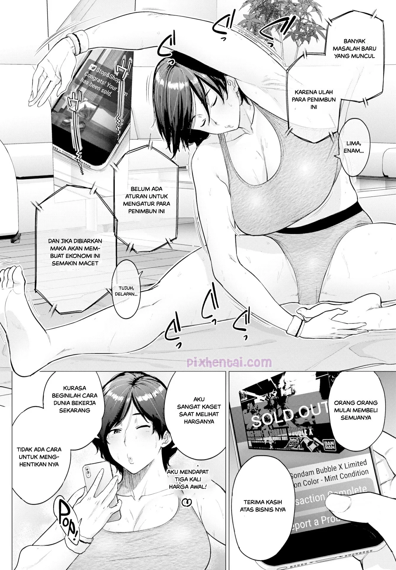 Menceritakan seorang Milf semok bernama Natsuki Mio-san yang suka menimbun barang dan saat barang tersebut mulai langka, ia akan menjualnya kembali dengan harga yang jauh lebih mahal. Bisnis curangnya tersebut pun sampai ke telinga para anti penimbun yang sayangnya mereka semua adalah gerombolan sikopet mesum. Orang-orang tersebut kemudian merencanakan suatu cara untuk menjebak dan menculik Mio-san.