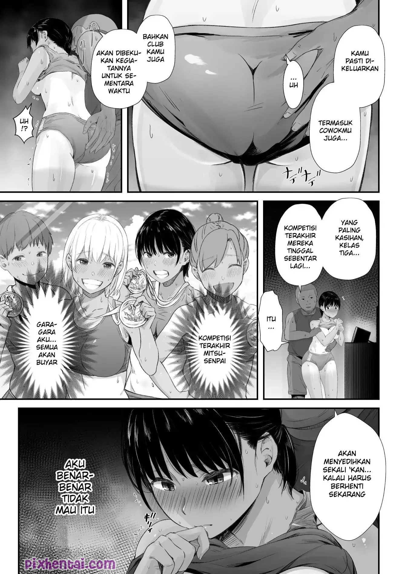 Setelah selesai berlatih dengan club larinya, seorang siswi bernama Kanae merapikan peralatan bersama dengan cowoknya. Namun, si cowok yang sangean mulai menggoda Kanae hingga terjadilah pertumpahan lendir disana. Esoknya, Kanae dipanggil oleh pak guru, karena ternyata, apa yang ia dan pacarnya lakukan kemarin terekam cctv sekolah. Kanae dan cowoknya bisa saja di keluarkan dari sekolah dan clubnya dibekukan karena hal tersebut. Namun jika Kanae mau menuruti kemauan pak gurunya maka permasalahan tersebut akan selesai.