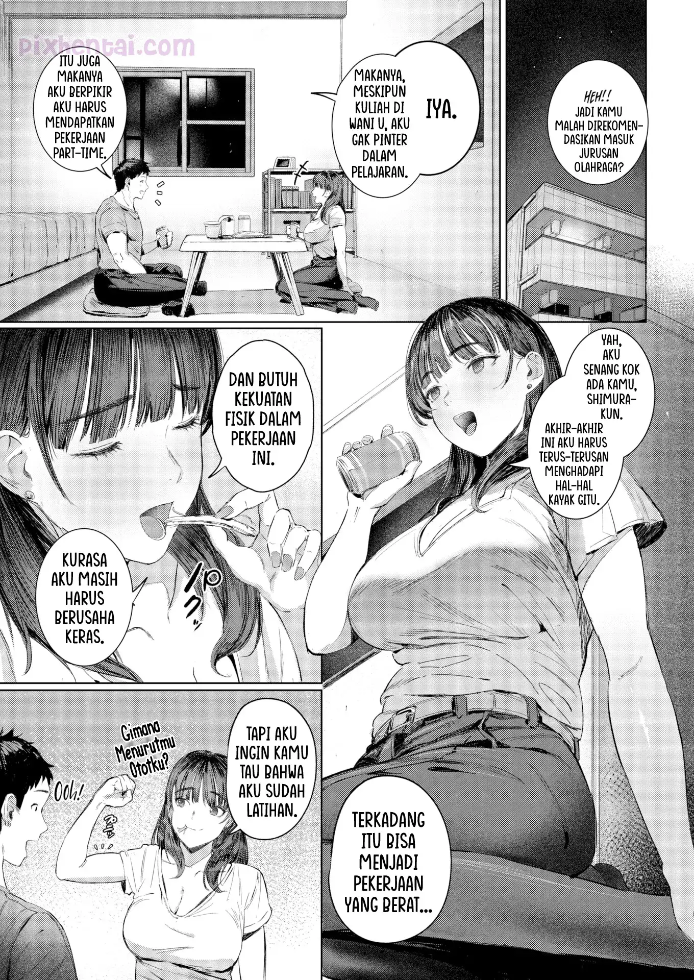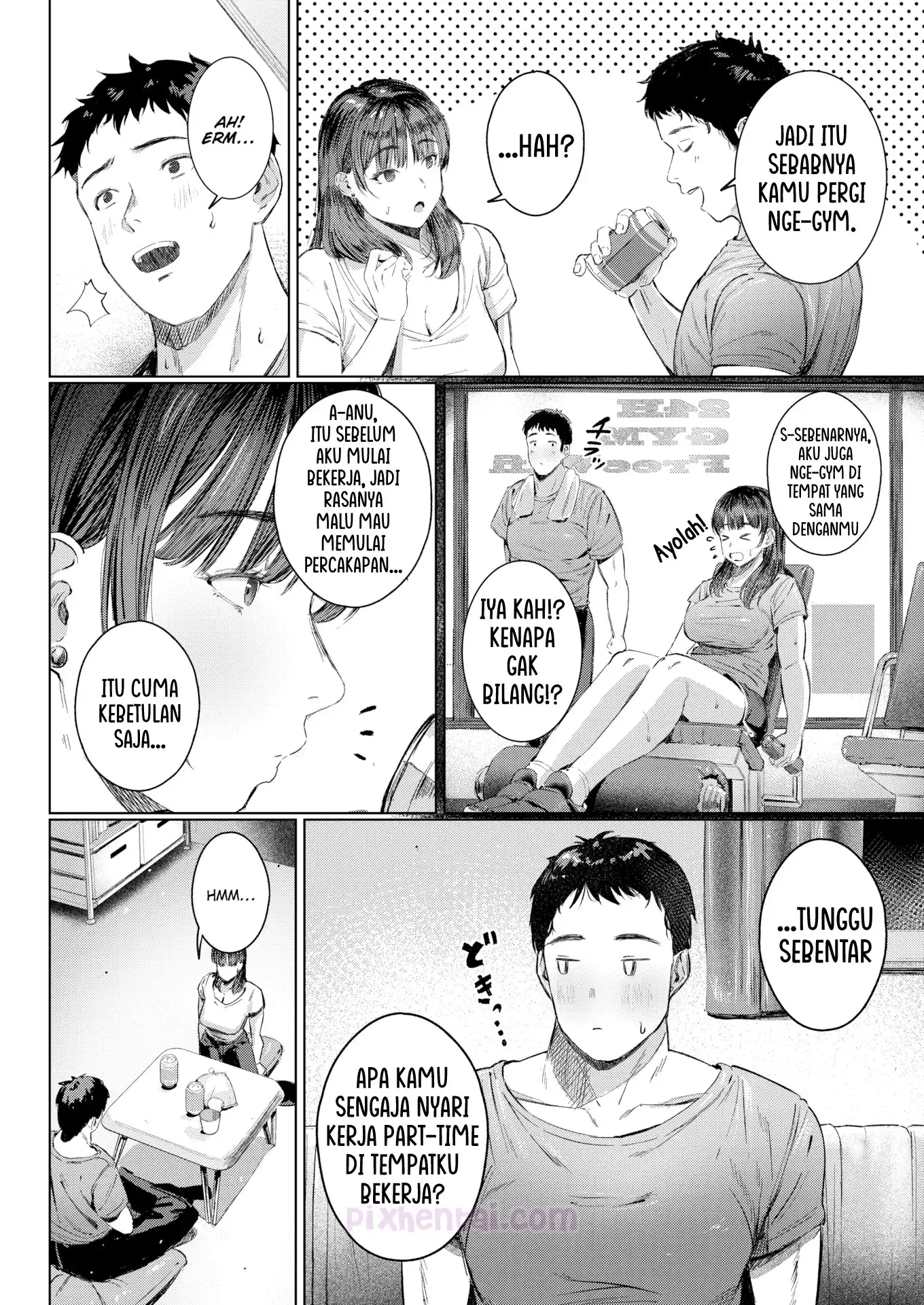 Shimura-kun tertarik kepada seorang cewek sexy yang kebetulan ia temui di tempat ngegym. Jadi ia dengan sengaja mencari pekerjaan part-time di tempat cewek itu bekerja. Dengan badannya yang macho dan berotot, tak sulit bagi dirinya untuk menarik perhatian cewek tersebut. Cukup dengan membantu pekerjaannya, maka ia akan diberi kenikmatan seusai pulang kerja.