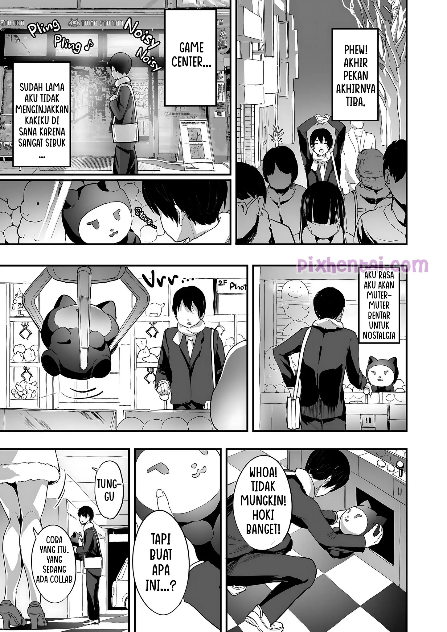 Sudah lama MC tidak menginjakan kakinya di game center. Namun di akhir pekan kali ini, ia menyempatkan diri untuk mampir ke tempat itu sebentar. Di sana, ia berkenalan dengan 2 cewek muda yang mengajaknya minum bersama sebagai balasan atas kebaikan si MC yang memberi mereka hadiah boneka. Setelah itu, gaya hidup si MC pun berubah.
