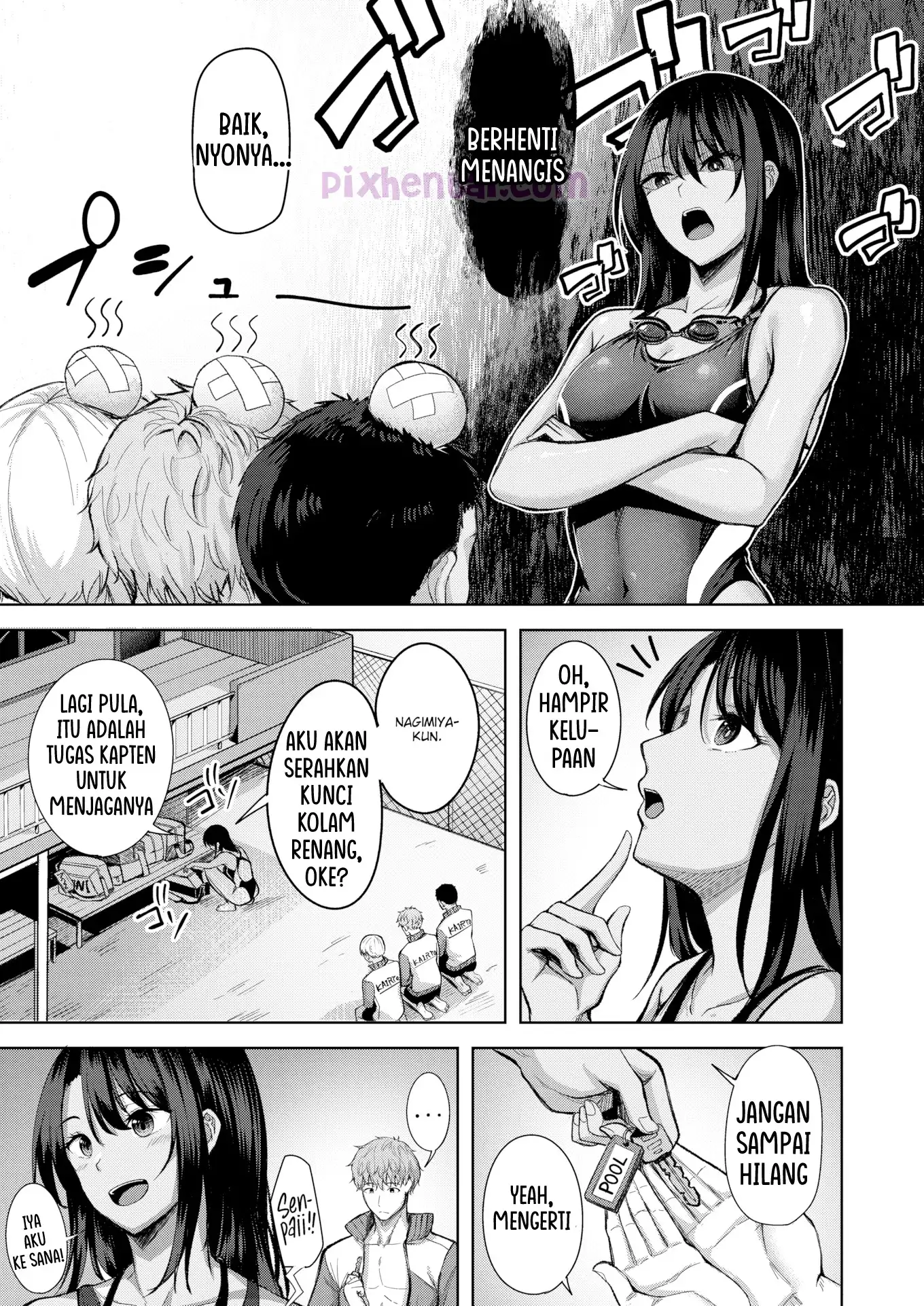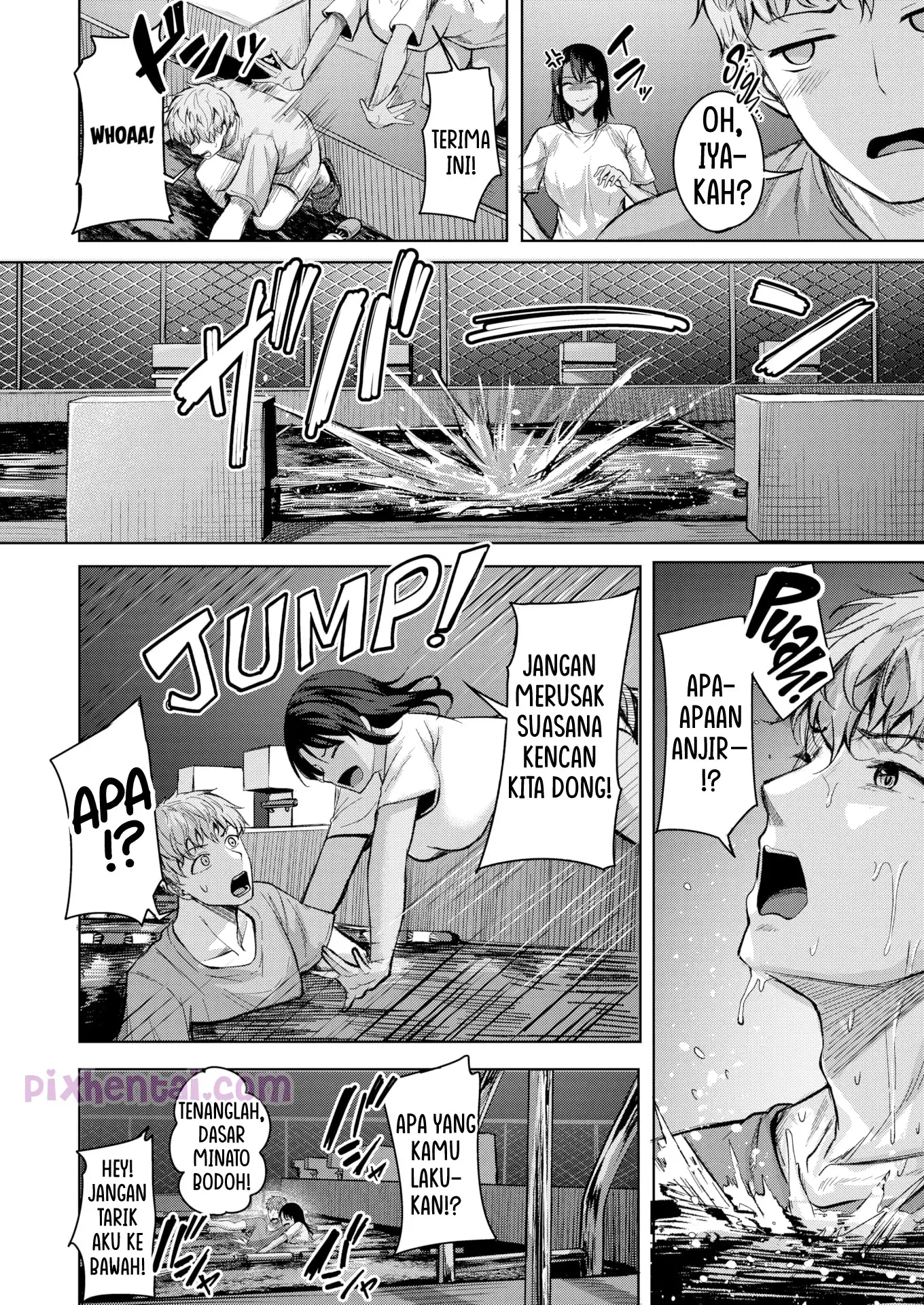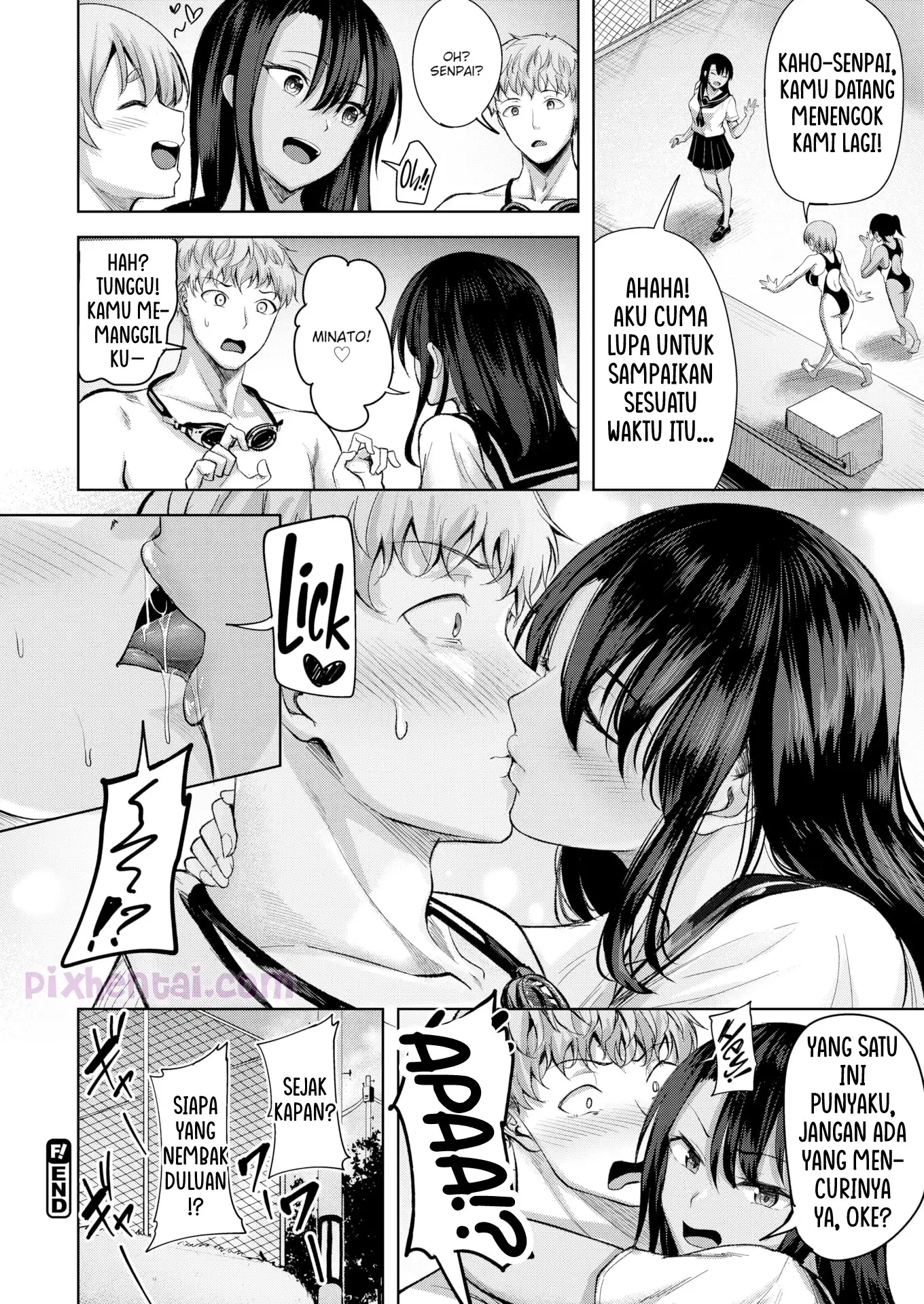 Malam-malam, Minato yang merupakan kapten baru klub renang diajak oleh senpai sekaligus pacarnya yang bernama Kaho ke kolam renang sekolah. Karena mereka tercebur ke kolam renang, badan mereka pun jadi basah kuyub semua. Di balik bajunya yang basah dan menerawang, tampaklah sepasang buah dada Kaho yang membuat Minato langsung terangsang.